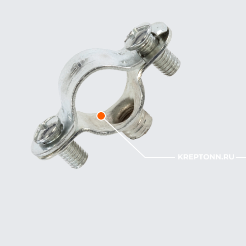Двухсторонний зажим для труб — это крепление, которое представляет собой две соединяющиеся пластины из нержавеющей или оцинкованной стали с дугообразной выпуклостью посередине, при соединении образующие окружность и плотно фиксирующие в ней кабель или трубку. По краям пластин для стягивания винтами расположены три отверстия с резьбой, и один быстродействующий замок, который позволяет замыкать и размыкать хомут без полного выкручивания фиксирующего винта. Выпускается по 50 штук в упаковке диаметрами фиксации от 8 до 63 мм.