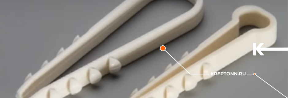 Представляет собой крепление в виде хомута или скобы, сделанное из нейлона и устойчивое к огню, пришедшее на замену морально устаревшим методам крепежа. Оно предназначено упростить монтаж проводов, кабелей, шнуров, шлангов в бетонные, однородные цементные, полнотелые керамзитобетонные и кирпичные основания, а также в природный и строительный камень с прочной структурой.