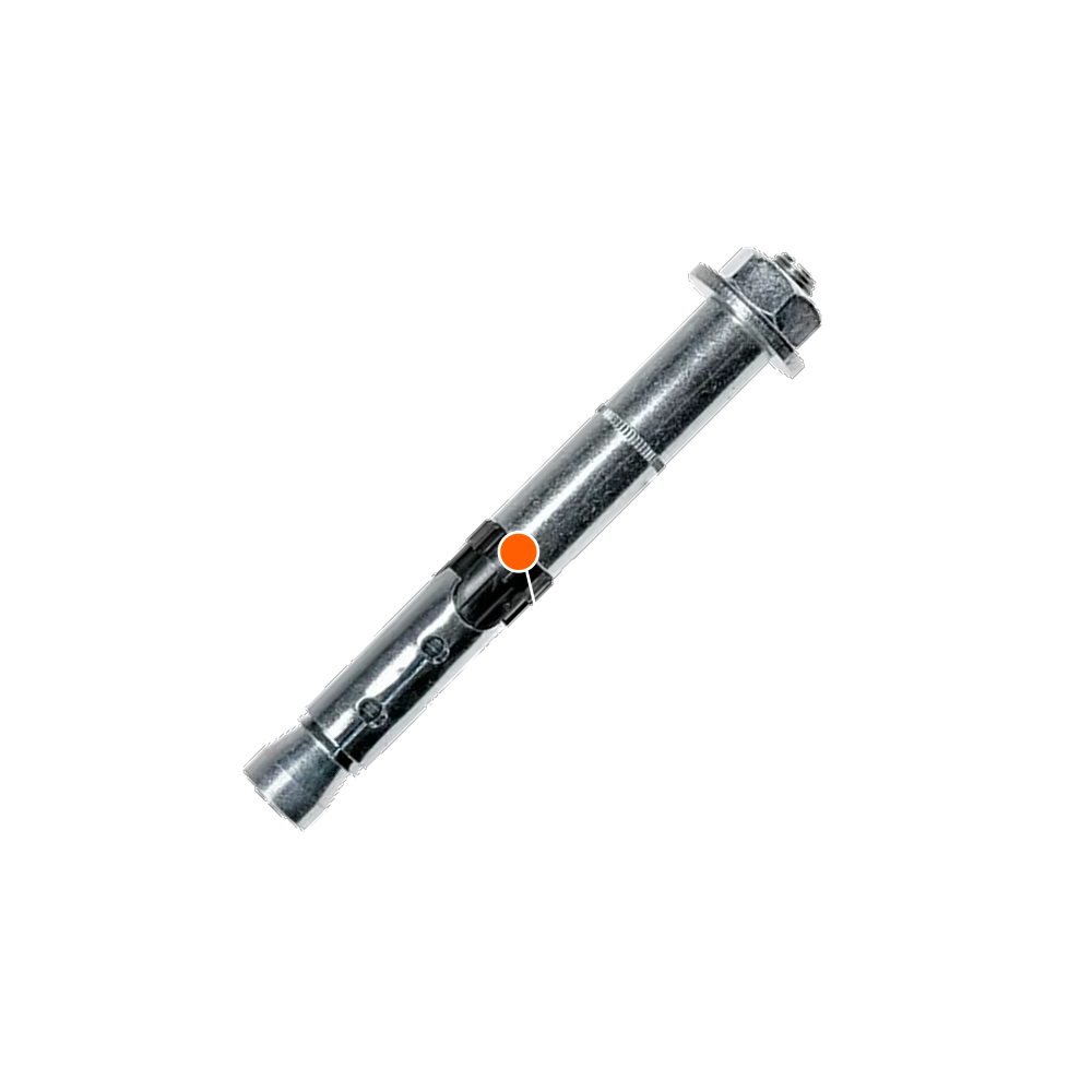 - Черное пластиковое кольцо предотвращает проворачивание анкера при затяжке и действует как зона смятия, воспринимающая проскальзывание под действием крутящего момента, благодаря чему закрепляемое изделие притягивается к базовому материалу.