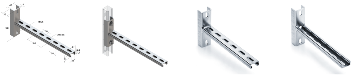 - Возможность использования в качестве консольной балки для крепления вентиляционных каналов и кабельных лотков средних и тяжелых нагрузок.