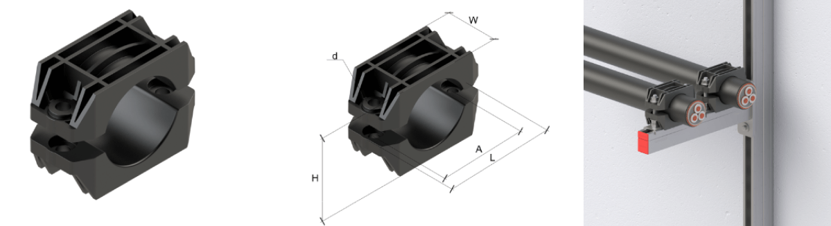 - Типоразмерный ряд крепежа имеет диапазон диаметров кабелей от 25 мм до 165 мм. Динамическая стойкость крепежа к токам короткого замыкания - до 200 кА.