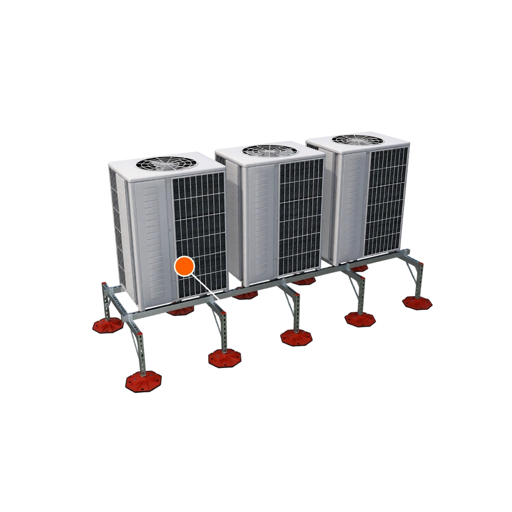Рама для 3 VRF-Блоков кровельная двухместная на нерегулируемых опорах для плоских кровель с уклоном - набор элементов для монтажа поддерживающей конструкции. Подходит для монтажа внутри и снаружи зданий.