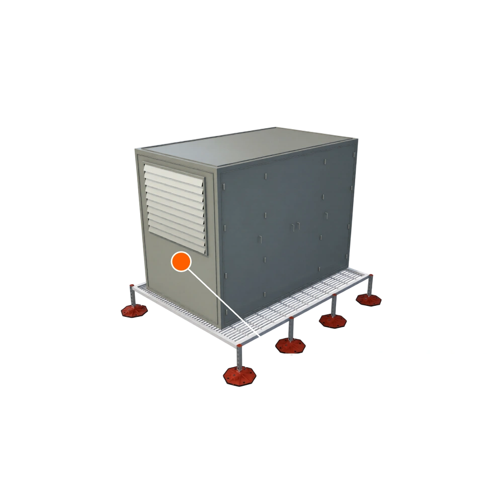 В основе конструкции - кровельные опоры с нескользящим антивибрационным ковриком, сделаны из материала HILST PAPlast, отличаются высокой устойчивостью к влаге и воде. Они принимают на себя основную часть нагрузки и создают равномерное распределение нагрузки от веса оборудования, снеговой нагрузки, а также других типов нагрузок и воздействий, предотвращая разломы самой кровли и обеспечивая надежную фиксацию установленных элементов.