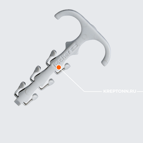 Представляет собой крепление в виде хомута или скобы, сделанное из нейлона и устойчивое к огню, пришедшее на замену морально устаревшим методам крепежа. Оно предназначено упростить монтаж проводов, кабелей, шнуров, шлангов в бетонные, однородные цементные, полнотелые керамзитобетонные и кирпичные основания, а также в природный и строительный камень с прочной структурой.
