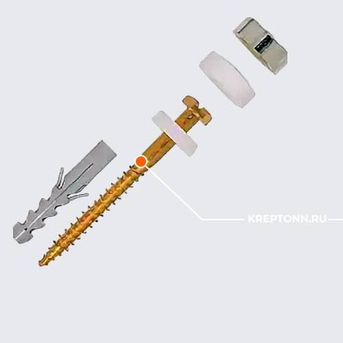 Наличие у дюбеля защитной широкой кромки не допускает соприкосновения рабочей поверхности основания с крепежным шурупом. В связи с чем исключается возможность повреждения керамики во время монтажных работ. Кронштейн же благодаря наличию овального отверстия в конструкции, способствует гибкому креплению в двух направлениях.
